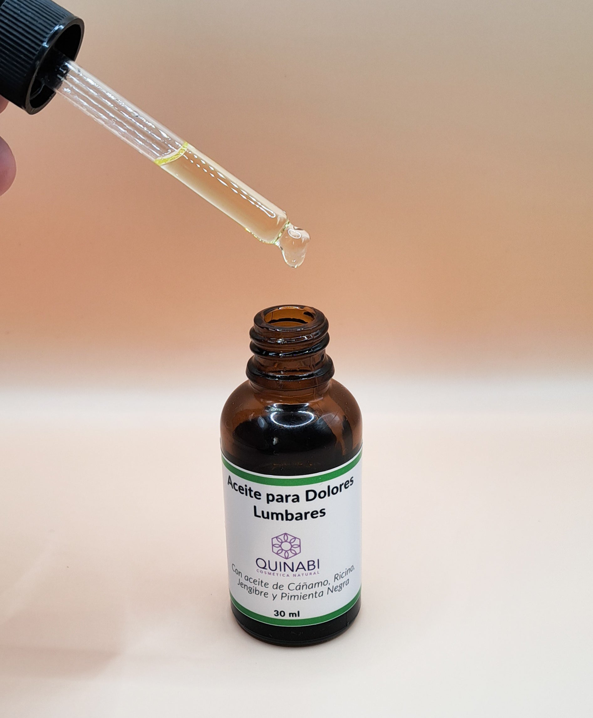 El Aceite de Masajes Lumbares Quinabi ha sido formulado desde la cosmetología funcional y la aromaterapia científica, combinando aceites vegetales de almendras, cáñamo y ricino con aceites esenciales de jengibre, pimienta negra y lavanda. Esta sinergia natural trabaja en profundidad, estimulando la circulación, aliviando la inflamación y relajando la tensión muscular acumulada en la zona lumbar o áreas de sobrecarga.